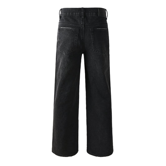 Men's Wide Leg Black Denim Jeans with Studded Front Panels and Streetwear Workwear Inspired Design 104