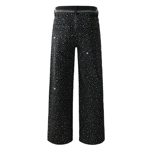 Men’s Oversized Streetwear Jeans in Vintage Black with Full-Length Glitter Detailing and Urban Luxury Vibe 105