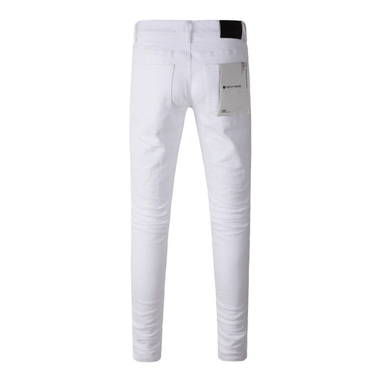 Men Classic Streetwear Skinny Jeans Solid White with Subtle Distressed Details PU9118