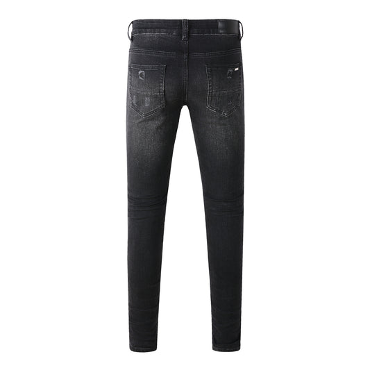 Chic Black Distressed Denim Pants 9080 Combining Rips and Patches for a Modern Style