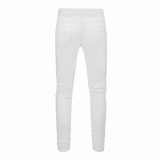 Men's Slim Fit White Jeans with Rhinestone Patches and Distressed Design 6808